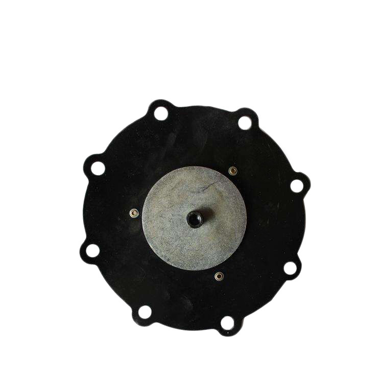 Диафрагма клапана электромагнитного ИМПа ульс вся часть резиновой диафрагмы установленная с заклепывая головой используемой для того чтобы преградить обжатый трубопровод воздуха или выход воздуха преграждая клапана, вентилируя разгружая отверстия и отверстия для болтов для фиксированной поддержки вокруг ее. Ключевая контрольная часть в клапане электромагнитного ИМПа ульс.